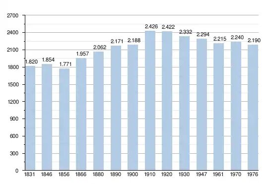 - Sources : INS, Rem. : 1831 jusqu'en 1970 = recensements, 1976 = nombre d'habitants au 31 décembre[2].