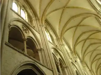 Voûte d'ogives quadripartite de l'église abbatiale de Fécamp.