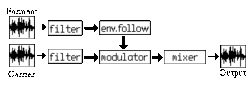 La technique originale de « voicecoder » est toujours utilisée en musique avec certains termes normalisés. Deux signaux, le porteur et le modulateur, sont passés dans une banque de filtres passe-bande. L'amplitude du modulateur est mesurée via un « suiveur d'enveloppe ». Les deux signaux sont ensuite modulés (multipliés) afin que l'enveloppe mesurée sur le modulateur soit appliquée au porteur. De cette manière, les caractéristiques d'amplitude d'une voix peuvent être appliquées à un son de synthétiseur via un circuit parallèle de (Passe bande)*(Passe bande+suiveur d'amplitude).