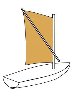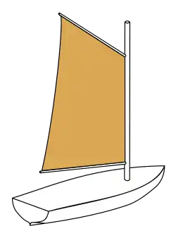 Une voile au tiers, ou bourcet[10], est une voile en forme de trapèze dont le bord supérieur, ou envergure, est transfilé sur une vergue dont la drisse est frappée au tiers avant de sa longueur.