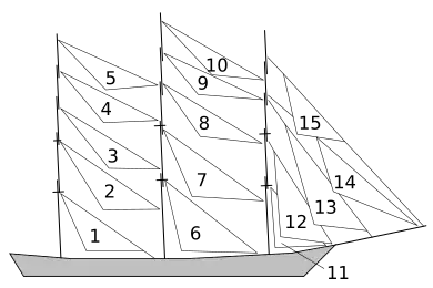 Suivant leur position sur un navire, les noms des voiles sont différentes[2].