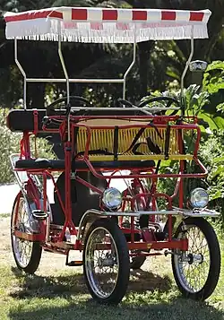 Des véhicules plus importants appelés vélos festifs permettent de transporter un nombre plus important de passagers, avec un conducteur.