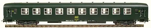 - Voitures courtes : HOrnby-acHO, RMA et Lima puis REE Modèles à partir du début d'année 2015. Ces dernières sont reconnues comme superbes[6],[7].