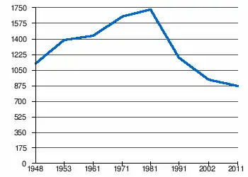 | 1 126 | 1 392 | 1 447 | 1 653 | 1 729 | 1 186 | 946[2] | 874[1] |
