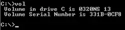 vol est une commande MS-DOS permettant d'afficher nom et le numéro de série d'un volume de disque installé sur l'ordinateur[1].