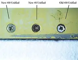 Comparaison du diamètre des vis attachant le pare-brise de l'appareil. Celles du milieu, plus fines, sont celles utilisées sur la vitre qui s'est éjectée durant le vol.