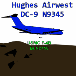 Le , un Douglas DC-9 assurant le vol Hughes Airwest 706 entre en collision avec un F-4 Phantom II du Corps des Marines des États-Unis au-dessus des Monts San Gabriel en Californie. Les 49 passagers et membres d'équipage du DC-9 trouvent la mort tandis que dans l'avion de chasse, l'officier d'interception radar (RIO) réussi à s'éjecter à temps, mais le pilote meurt dans la collision.
