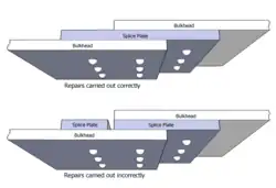 Représentation de la réparation effectuée sur la cloison de pressurisation arrière du 747 accidenté