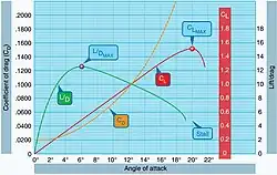 Comme la portance et la traînée sont toutes deux proportionnelles au coefficient de portance et de traînée respectivement multiplié par le même facteur (1/2 ρ air v2S), le L/D ratio peut être simplifié au coefficient de portance divisé par le coefficient de traînée ou Cl/Cd, et comme les deux sont proportionnels à la vitesse, le L/D ratio ou Cl/Cd est alors généralement tracé en fonction de l'angle d'attaque.