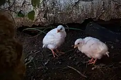 | Variétés | Pintadeau au plumage gris-bleuâtre poulet noir et poulet jaune |