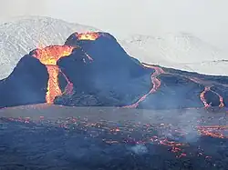 - ↑ Icelandic Media RÚV: https://www.ruv.is/frett/2021/03/19/eldgos-hafid-vid-fagradalsfjall. Retrieved 19 March 2021.