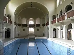 Le Volksbad de la ville de Nuremberg à Nuremberg, a été construit entre 1911 et 1913. Le Volksbad (ou Bains Municipaux) est considéré comme un joyau de la culture thermale Art Nouveau. La conception du bâtiment reprend les thermes romains, tels que les colonnes du portique à l'entrée avec les armoiries de la ville.