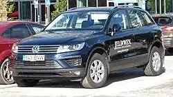 Le Volkswagen Touareg est un véhicule automobile4x4 de luxe du constructeurallemandVolkswagen. Il a été construit en coopération avec Porsche dont le modèle Cayenne partage la plateforme, ainsi que l'Audi Q7[1], même s'il existe de nombreuses différences de style, d'équipement et de technologie. Le Touareg est le premier modèle de 4x4 luxe produit par le groupe VAG. Elle est sortie en 2002. En , elle reçoit un restylage (assez léger: optiques, bas de carrosserie et quelques éléments intérieurs). Elle porte le nom d'un peuple de Berbères nomades vivant dans le Sahara central (cf: Touareg). Elle est fabriquée en Slovaquie sur les lignes d'assemblage de l'Audi Q7 x Porsche Cayenne.