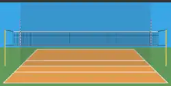 Un terrain de volley-ball, en vue horizontale.