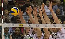 Le volley-ball, ou volleyball[1], est un sport collectif opposant deux équipes de six joueurs[2], de 4 joueurs ou de 2 joueurs séparés par un filet de hauteur variable selon le niveau et la catégorie, qui s'affrontent avec un ballon sur un terrain rectangulaire de 18 m de long sur m de large ou de 14 m de long et m de large selon la catégorie.