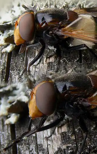 Grâce à son corps poilu, elle semble pouvoir contribuer à la pollinisation, bien qu'à moindre degré que les abeilles et les bourdons.