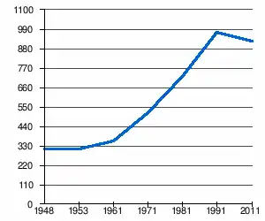 - 1 2 (sq) « Évolution de la population 1948-2011 », sur pop-stat.mashke.org (consulté le ).