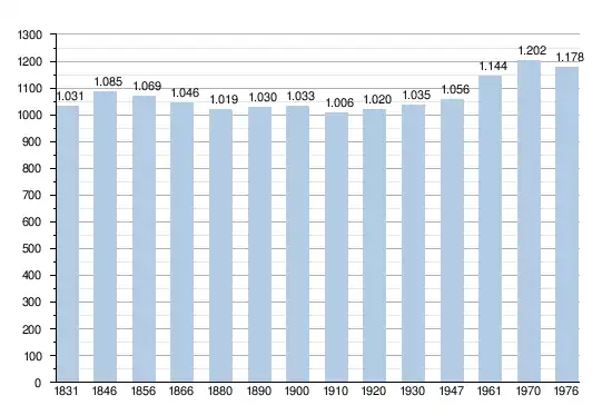 - Sources : INS, Rem. : 1831 jusqu'en 1970 = recensements, 1976 = nombre d'habitants au 31 décembre[2].
