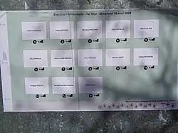 - ↑ Sources : pages 38 à 44 de Vote électronique : les boîtes noires de la démocratie et réponses des candidats au questionnaire de l'association Ordinateurs-de-Vote.org