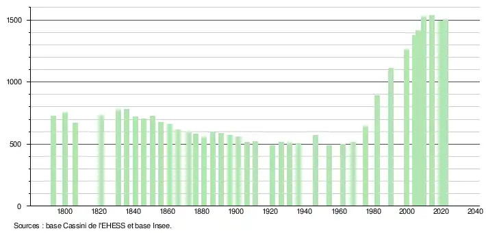 - ↑ Fiches Insee - Populations de référence de la commune pour les années 2006, 2007, 2008, 2009, 2010, 2011, 2012, 2013, 2014, 2015, 2016, 2017, 2018, 2019, 2020, 2021 et 2022.