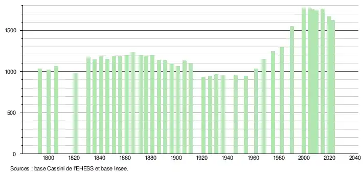 - ↑ Fiches Insee - Populations de référence de la commune pour les années 2006, 2007, 2008, 2009, 2010, 2011, 2012, 2013, 2014, 2015, 2016, 2017, 2018, 2019, 2020, 2021 et 2022.