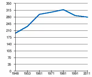 - 1 2 (sq) « Évolution de la population 1948-2011 », sur pop-stat.mashke.org (consulté le ).