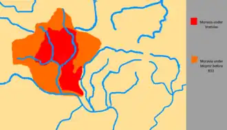 Le territoire contrôlé par Vratislav n'était pas si grand que celui du début de règne de Mojmir, Il contrôlait les plus grandes villes de Moravie comme Mikulcice, Olomouc et Brno. Le territoire était frontalier de la principauté de nitra et du khaganat avar.