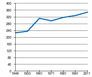 - 1 2 (sq) « Évolution de la population 1948-2011 », sur pop-stat.mashke.org (consulté le ).