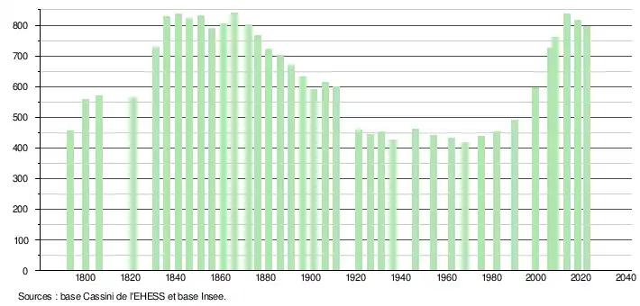 - ↑ Fiches Insee - Populations de référence de la commune pour les années 2006, 2007, 2008, 2009, 2010, 2011, 2012, 2013, 2014, 2015, 2016, 2017, 2018, 2019, 2020, 2021 et 2022.