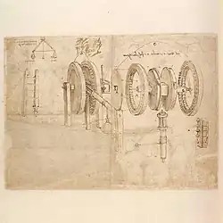 - ↑ D’après Domenico Laurenza et Emmanuel Pailler (adaptation française), Les machines de Léonard de Vinci : secrets et inventions des codex, Paris, Gründ, , 240 p. (ISBN 978-2-7000-1452-5), p. 165.