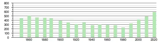 La commune compte 585 habitants au 31 décembre 2023 pour une densité de population de 116 hab/km2[11]. Sur la période 2010-2023, sa population a augmenté de 22,4 % (canton : 18,6 % ; Suisse : 9,4 %)[12].