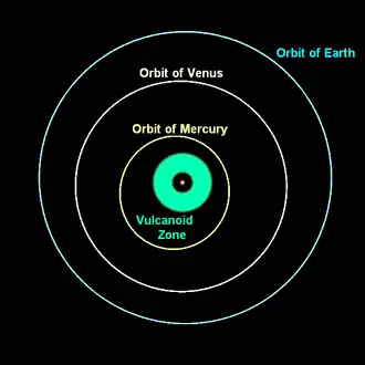 Néanmoins, des nuages de poussières intramercuriens s'agglomèrent de manière transitoire à 0,043 unité astronomique (6,4 millions de kilomètres) du Soleil, ce qui a été confirmé lors de nombreuses éclipses solaires[4]. Une zone de stabilité est en effet également prédite à cette distance. On ne peut pas pour autant parler d'une ceinture d'astéroïdes vulcanoïdes et on ne sait pas grand-chose de ces objets en raison de la difficulté de l'observation.