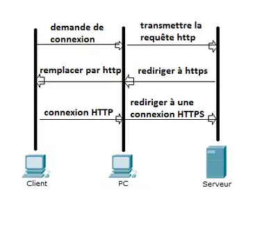 On peut également mentionner l'attaque qui consiste à ce qu’une personne malveillante se mette au milieu de la conversation et se fasse passer pour le serveur, dite attaque de l'homme du milieu. De même, l'attaque proposée en 2009 par Moxie Marlinspike est difficilement repérable par la victime car elle peut être menée sans avertissement de la part du navigateur. Les navigateurs web (tels que Chrome, IE, Firefox, Opera, Safari) émettent des messages d’avertissement sérieux face à un faux certificat SSL. Pour éviter ces messages, Marlinspike a proposé une nouvelle technique d'examen du SSL qui consiste à intercepter la communication, puis détourner le trafic HTTPS sur un réseau et le rediriger vers le navigateur client, les communications dans ce cas peuvent donc être espionnées puisqu’il n’y a plus de chiffrement et dans ce cas l’attaque peut se faire sans avertissement de la part du navigateur[23],[24].