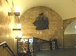 Elle dispose, en surface, d'un pavillon d'accès, en relation avec le quai de la station par un tunnel en pente équipé de trois escaliers mécaniques suivi d'un couloir et de deux escaliers fixes. Par ailleurs le hall est relié par un escalier fixe à un long passage souterrain piétonnier disposant de sept bouches de part et d'autre de la voie routière et des rails du tramway situés en surface[2].