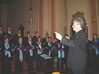 Vytautas Miškinis dirigeant le Chœur Renato Portelli, de Mariano du Frioul en Italie (2006).