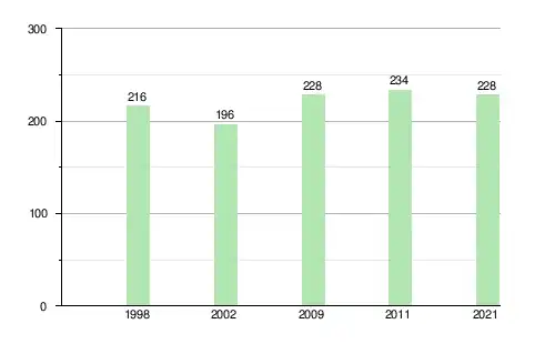 En 2021, le village de Wójcin comptait 228 habitants, en augmentation de 5,56 % par rapport à 1998[6]. En 2021, 54,8 % des habitants du village de Wójcin étaient en âge de travailler (entre 18 et 64 ans pour les hommes et 18 et 59 ans pour les femmes). 25,9 % des habitants avaient moins de 18 ans et 19,3 % avaient l'âge légal de la retraite. Les personnes en âge de travailler représentaient 59,5 % de la population de la voïvodie de Couïavie-Poméranie et 59,5 % de la population de Pologne. Ainsi, le taux de dépendance démographique du village de Wójcin est supérieur à celui de la voïvodie de Couïavie-Poméranie et supérieur à celui de la Pologne[7].