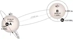 | Gravité de surface (log g) | 4,27 ± 0,07 / 4,26 ± 0,06[4] |