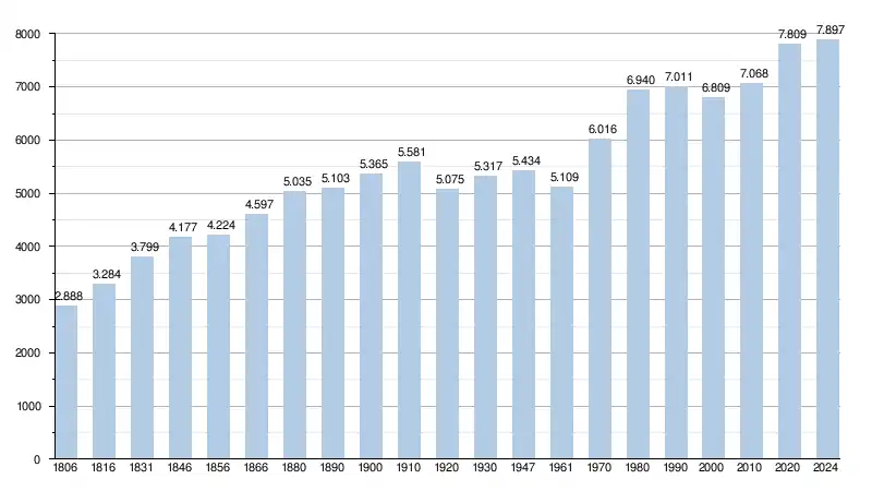 - Source : DGS - Remarque: 1806 jusqu'à 1981=recensement; depuis 1990=nombre d'habitants chaque 1er janvier[2]