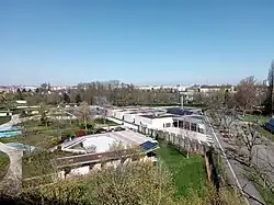 Vue générale depuis la terrasse de l'IPE 4. Au premier plan, la cité-jardin Ungemach. | |||