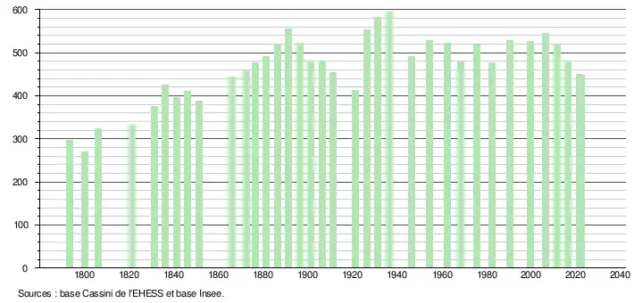 - ↑ Population municipale de référence en vigueur au 1er janvier 2025, millésimée 2022, définie dans les limites territoriales en vigueur au 1er janvier 2024, date de référence statistique : 1er janvier 2022.