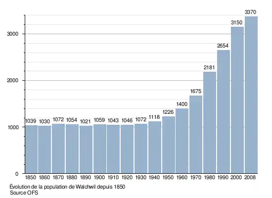 Le graphique suivant résume l'évolution de la population de Walchwil entre 1850 et 2008[3] :