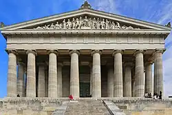 Le Walhalla est un temple allemand néo-dorique en marbre achevé en 1842, situé à Donaustauf au bord du Danube, à 10 km en aval de Ratisbonne, en Bavière, en Allemagne.
