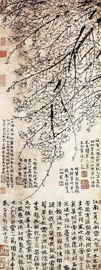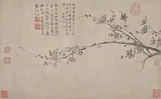- Fleurs de prunier, poème du peintre daté 1353 et poème de Tang Su.