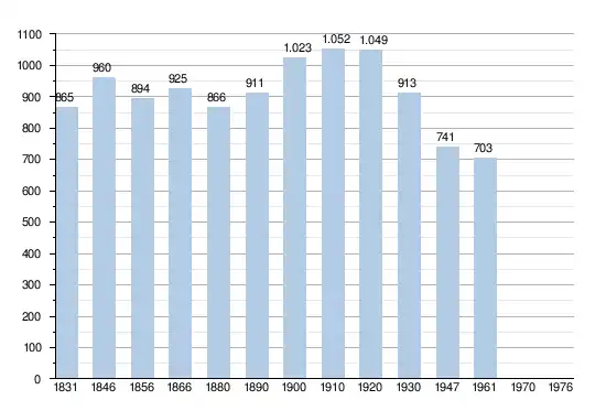 - Sources : INS, Rem. : 1831 jusqu'en 1970 = recensements, 1976 = nombre d'habitants au 31 décembre.