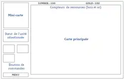 Sélectionner une ou plusieurs unités fait apparaître dans la partie gauche de l'écran le statut de celles-ci, incluant un portrait de l'unité et sa barre de vie, ainsi qu'un certain nombre de boutons de commande qui permettent de donner des ordres à cette unité comme « attaquer » ou « rester en position ». De même, sélectionner un bâtiment fait apparaître des boutons de commande qui permettent de lancer la production d'unités ou la recherche d'une amélioration. Une barre, qui indique le degré d'avancement de l'action en cours, apparaît alors dans cette même zone. La sélection d'une seule unité ou d'un bâtiment se fait en cliquant dessus à l'aide de la souris. Le joueur peut également sélectionner jusqu'à quatre unités d'un coup en maintenant la touche Maj enfoncée lors de la sélection ou en effectuant un cliquer-glisser autour d'un groupe d'unités. Les autres commandes du jeu sont également accessibles en utilisant la souris mais peuvent aussi être activées à l'aide de touches du clavier. Pour faire attaquer une unité préalablement sélectionnée, le joueur peut ainsi soit cliquer sur l'icône correspondant soit appuyer sur la touche « A » du clavier avant de cliquer sur l'unité ou le bâtiment à attaquer[10],[18].