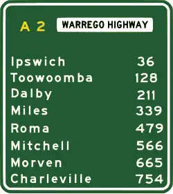 La Warrego Highway est un axe routier situé dans le sud du Queensland, en Australie. Elle relie la zone côtière à la région centrale du sud de l'État et est longue d'environ 750 kilomètres. Elle tire son nom du fleuve Warrego, qui passe à proximité de son extrémité. L'ensemble de la Warrego Highway fait partie de la route nationale reliant Darwin à Brisbane. Ancienne "route nationale 54", elle est devenue la "route nationale A2" lorsque le Queensland a commencé à passer la dénomination de son réseau routier au système alphanumérique.