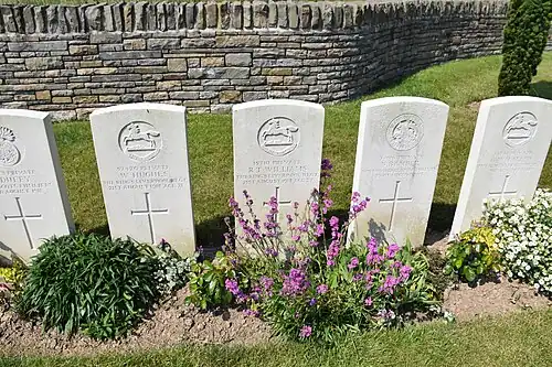 Sept tombes de soldats du "Gordon Highlanders" tombés le 23 août 1918.