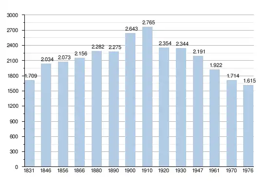 - Sources : INS, Rem. : 1831 jusqu'en 1970 = recensements, 1976 = nombre d'habitants au 31 décembre[2].