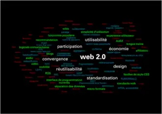 | Web 2.5 | Pour certains, désigne le Web transformé en plateforme pour les applications en ligne[29]. Expression également utilisée par l’entreprise Criteo pour sa méthode de filtrage intelligent du contenu[30] (le Web 2.0 étant vu comme l’apport de contenu sans discrimination des participants). | |