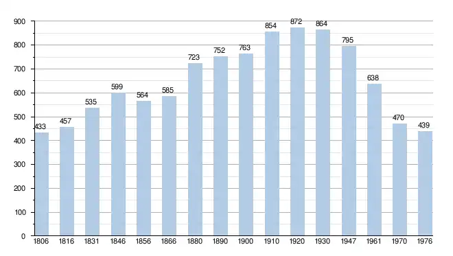 - Sources : INS, Rem. : 1831 jusqu'en 1970 = recensements, 1976 = nombre d'habitants au 31 décembre[2].